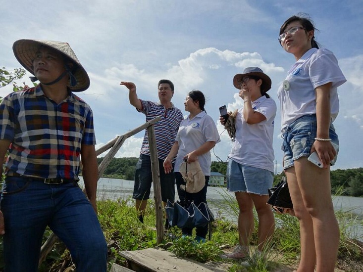團(tuán)隊(duì)女生在廣西防城港參觀(guān)廣西紅樹(shù)林生態(tài)養(yǎng)殖基地