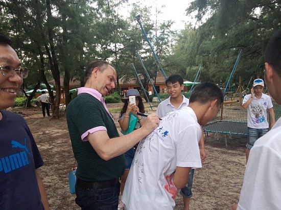 外國(guó)友人表示愿意參加到保護(hù)紅樹(shù)林的行動(dòng)中來(lái),在隊(duì)服上簽上自己的名字
