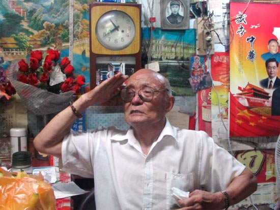 在陳相德家中,墻上掛的是中國(guó)地圖、中國(guó)工農(nóng)紅軍地圖,堂屋里掛著中國(guó)偉人畫(huà)像、開(kāi)國(guó)十大元帥畫(huà)像,顯示出他對(duì)抗戰(zhàn)歷史的銘記。陳相德在抗日戰(zhàn)場(chǎng)上穿越槍林彈雨,沐浴硝煙彌漫,親眼目睹過(guò)日軍飛機(jī)被擊落。現(xiàn)在提起當(dāng)年的情形,他仍無(wú)比激動(dòng)。