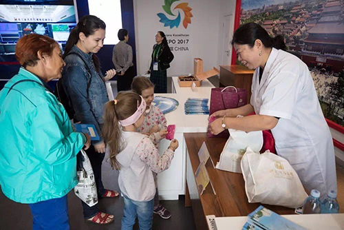 這次海南日,薩仁的日程排得很滿!皬娜齺喌桨⒗緢D,再去莫斯科和圣彼得堡,回到上海后坐高鐵到北京,再飛到阿斯塔納,7天時間拜訪了6個城市,我們這一周都沒能好好休息。在北京高鐵站去機場的路上,我在給愛人打電話的時候抹眼淚說太累了。但是我愛人鼓勵我堅持下來。能夠在世博的舞臺上,展示我們中國的中醫(yī)中藥,推廣我們海南的醫(yī)療旅游服務(wù)。雖然辛苦但是值得!