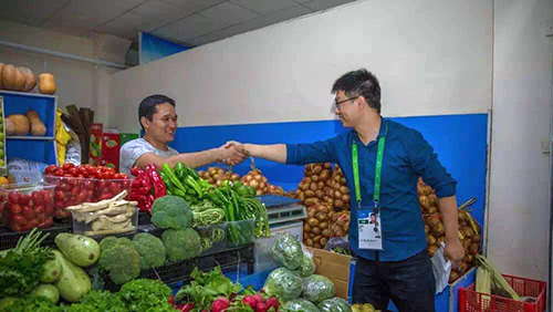 分發(fā)完盒飯,劉會(huì)彬說一會(huì)要去菜市場采購一次食材,邀請(qǐng)我們一同前往,小編當(dāng)然欣然應(yīng)邀。途中,又開心地交流起來。