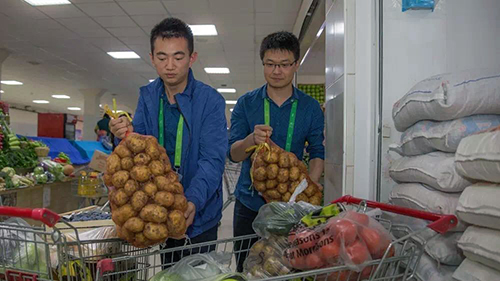 兩位“90后”大廚已經(jīng)來阿斯塔納快3個(gè)月了,每天不是在做飯就是在送飯、采購的路上。每周都要去菜市場采購兩三次,一是因?yàn)閿?shù)量龐大,二是保障食材的新鮮度。剛來阿斯塔納的時(shí)候,兩個(gè)人到處奔走尋找適合中餐的原材物料,幾乎跑遍了阿斯塔納大大小小的農(nóng)貿(mào)市場和超市,很多食材和調(diào)味品甚至要從阿拉木圖和周邊城市調(diào)配。綜合比較之下,最終選定了郊區(qū)的一家農(nóng)貿(mào)超市,因?yàn)檫@里的食材較為新鮮、價(jià)錢也適中,只是路途遙,每次往返開車都要將近2個(gè)小時(shí)。