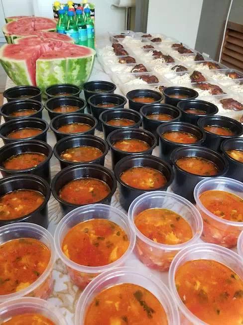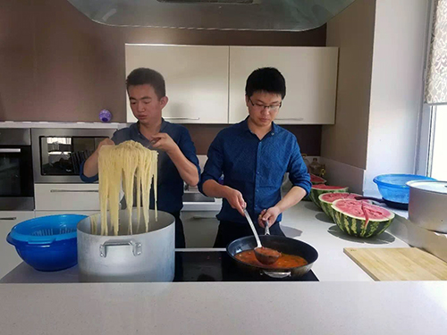 原來兩位大廚沒有任何幫手,從采購到洗菜、做飯、分飯?jiān)俚剿惋、洗洗刷刷全靠他們,這可比在酒店只當(dāng)后廚辛苦多了。當(dāng)?shù)貤l件有限,沒有國內(nèi)的明火燃?xì),阿斯塔納當(dāng)?shù)貜N房只有電磁爐,受熱較慢且不均勻,對(duì)于廚藝和耐力都是不小的挑戰(zhàn)。剛開始時(shí),沒采購到食堂用大型電飯鍋,每天只能用普通家庭電飯鍋一鍋一鍋蒸,每天12鍋,從早忙到晚。從5月底來到阿斯塔納將近3個(gè)月,兩位大廚沒有完整休息過一天。