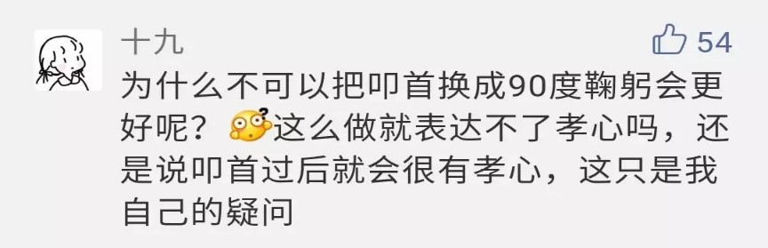 網(wǎng)友“簡單”:生活要有儀式感。叩首屬于傳統(tǒng)文化的一部分。