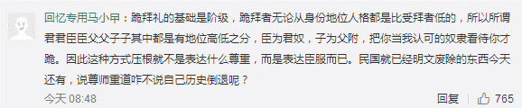 有網(wǎng)友批評活動作用:“跪拜禮是封建階級文化產(chǎn)物,抹殺了獨(dú)立人格?”
