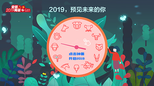 打開(kāi)人民網(wǎng)兩會(huì)專(zhuān)題,便可看見(jiàn)“萬(wàn)紅叢中一點(diǎn)綠”,這一抹“綠”便是特別策劃“2019兩會(huì),預(yù)見(jiàn)未來(lái)”。該策劃的封面設(shè)計(jì)不僅呼應(yīng)主題,且頗具神秘感,時(shí)間元素貫穿全部場(chǎng)景。