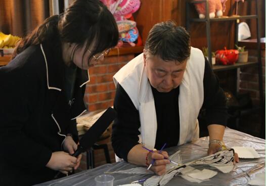 肖靜在活動(dòng)現(xiàn)場(chǎng)與非遺愛好者共同制作毛猴