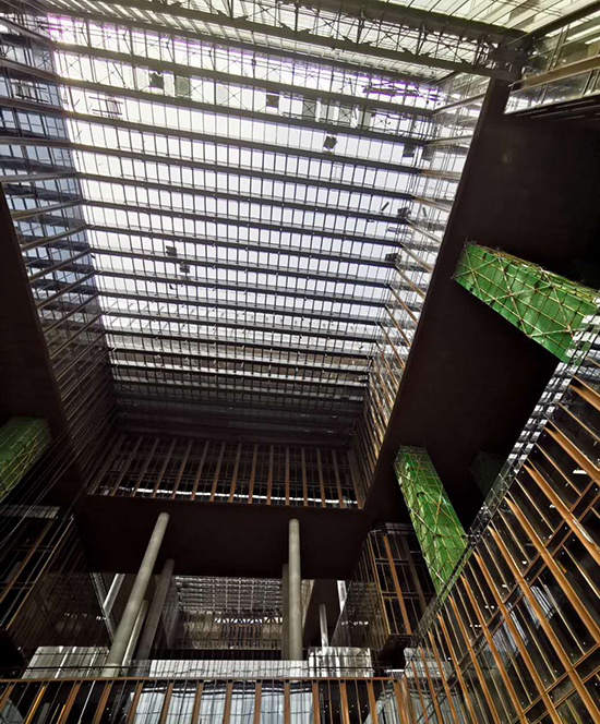 “傳統(tǒng)的腳手架是從下往上搭建,但經(jīng)過我們亞投行項(xiàng)目青年員工的創(chuàng)新,改為從上往下搭建,改變了架體的結(jié)構(gòu)形式,將本來需要60米高的滿堂架改為3米高的吊掛架,成功解決了首層樓板對架體承載力不足難題! 31歲的項(xiàng)目總工程師劉瑞軍每每談到創(chuàng)新使用吊掛腳手架裝修大跨度采光頂幕墻時(shí),都神情飛揚(yáng),同時(shí)感慨萬千。