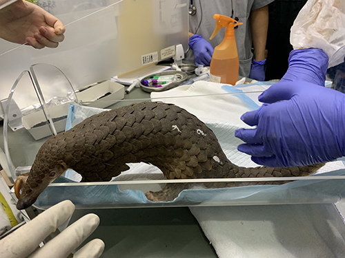 穿山甲“沒(méi)動(dòng)”正在做CT檢查。受訪者供圖